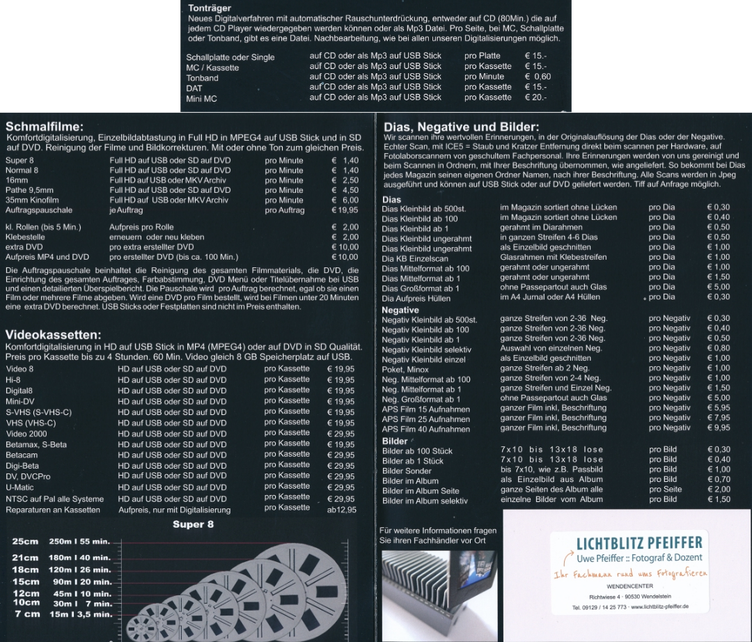 Ein weiteres Feld tat sich auf, das ich zunächst wieder in einem Keller ausübte, diesmal in unserem Wohnhaus in Wendelstein: der Handel mit Kameras und Zubehör und der Start meines Online-Shops. Das war natürlich keine Dauerlösung. So öffnete ich am 3. Dezember 2016 im WendenCenter in Wendelstein die Türen meines ersten eigenen Ladengeschäftes. Damit baute ich meinen Warenbestand neben den Kameras mit allem Zubehör um Glasbilder, Bilderrahmen, Batterien, Taschenlampen und vieles mehr aus. Auch mein Portfolio an Dienstleistungen konnte ich erweitern und Passbilder, Digitalisierung, Poster- und Leinwanddruck, Fotodruck usw. anbieten. Außerdem schaffte ich eine professionelle FotoboX zur Vermietung bei Veranstaltungen an.